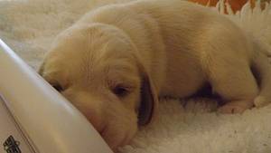 ... bei den ersten Welpen. ENIA und EBONY, die beiden zweifarbigen Hündinnen, machen den Anfang.